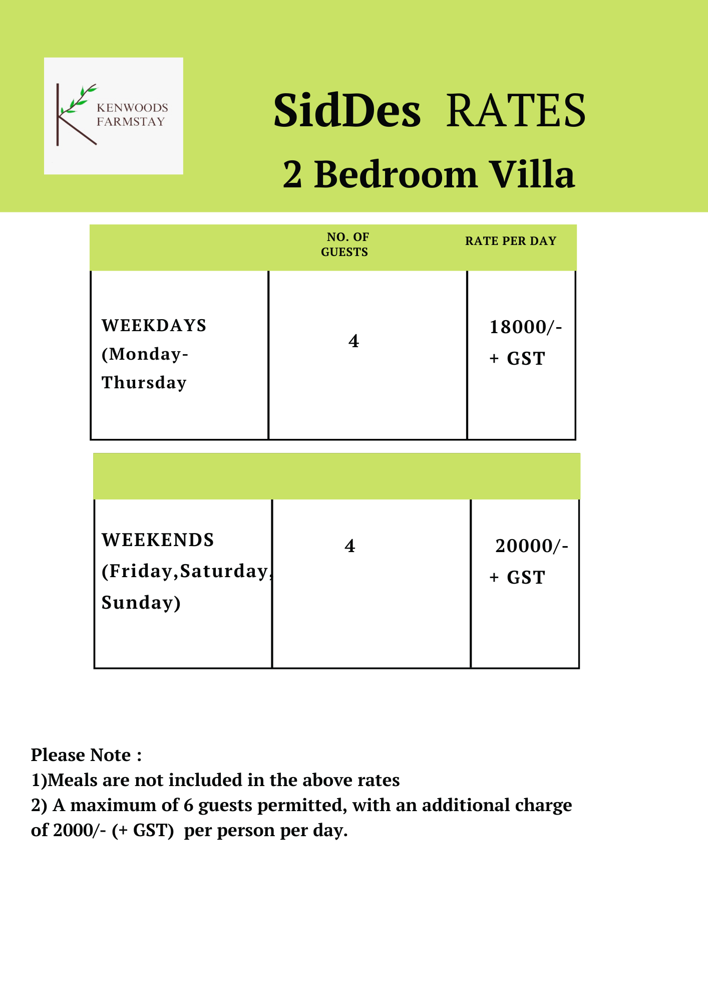 - Booking warrants a 100% payment for stay, for a confirmation of date.
